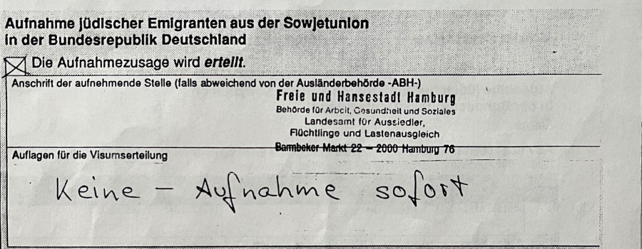 „Da rief mich eine Frau aus der Botschaft an […] und dann hat sie gesagt, dass die ersten Zwanzig die [Einreise-]Erlaubnis bekommen haben […] und ich bin auch dabei.“